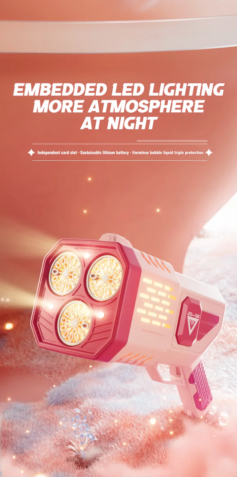 1. 【The Latest Rocket Launcher Bubble Machine】The bubble machine with LED . it can blow out hundreds of bubbles per minute. when bubbles all over the sky, the color bubble can attract their attention. and satisfy preferences, give you and your family more joys.